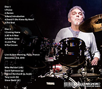 リマージュ ニューモーニング 2010 ライブ・アット・ニューモーニング、パリ、フランス 11/03/2010 2010年11月にパリの有名ジャズ・クラブ「ニュー・モーニング」におけるライブ全10曲をオーディエンス音源ながら何らストレスを感じないピュアーな音質で収録されており、テクニック至上を抑制昇華させた名匠技を存分に聴かせてくれます。因みにジャケット写真は音源提供者から送られて来た当日の写真です。 (詳細は新譜ブログでご覧下さい) 試聴サンプルはココをクリックして下さい。